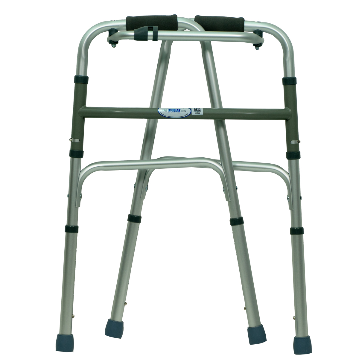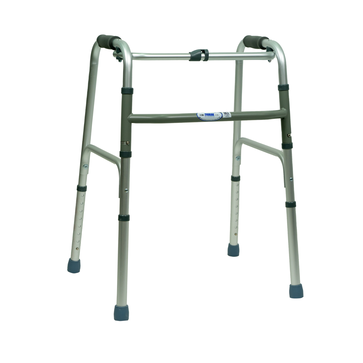 Ελαφρύς περιπατητήρας από ανοδιωµένο αλουµίνιο. Πτυσσόµενος µε µπουτόν για εύκολη αποθήκευση και µεταφορά. Ανατοµικές λαβές από πλαστικό υλικό. Λάστιχα υποποδίων αντιολισθητικά. Ρυθµίζεται σε ύψος.
